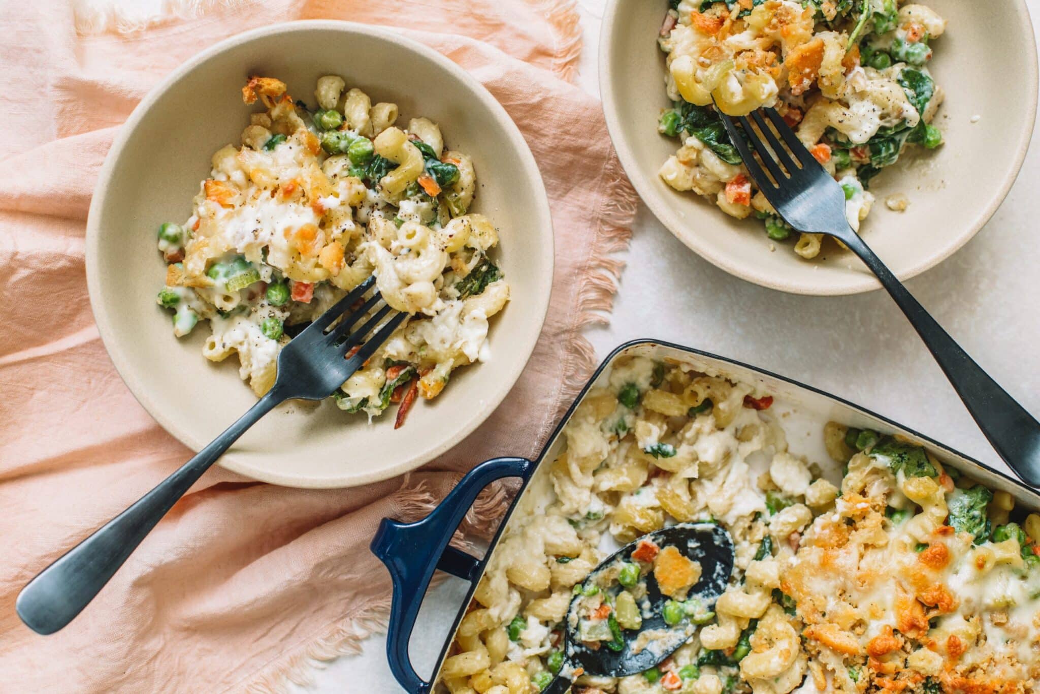 Vous recherchez un plat réconfortant et sain, facile à préparer ? Cette Casserole Crémeuse au Thon et aux Petits Pois est la réponse. Cette délicieuse casserole combine de tendres nouilles aux œufs, du thon succulent, de doux petits pois et une sauce crémeuse aux champignons. Garnie d’une couche croustillante de cornflakes au beurre, c’est un repas convivial, à la fois satisfaisant et délicieux, qui plaira à toute la famille.