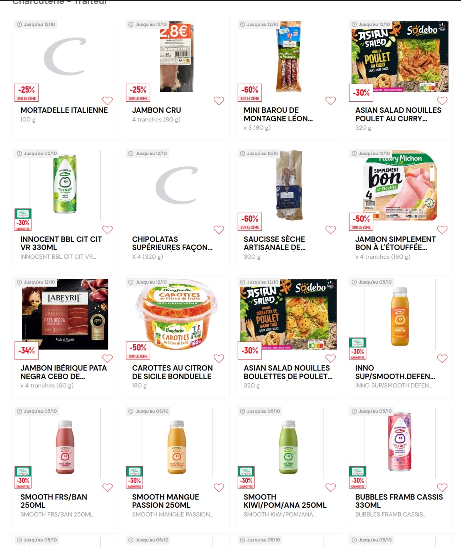 Consultez en ligne les offres, remises et rabais du prospectus Géant Casino, valable du 29 septembre – 5 octobre, 2025. Géant Casino est exclusivement orienté vers les prix bas, les promotions et les bons plans. Les produits Casino sont à un prix imbattable. La marque offre souvent des promotions de produit, 1 acheté 1 gratuit ou 2 achetés 1 gratuit, ainsi que des promos de -20 à -50%. La carte Casino vous permet d’accéder à encore plus de promotions et bons de réduction.