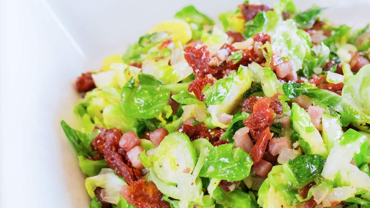 Mélange de Choux de Bruxelles Sautés avec Pancetta et Tomates Séchées au Soleil
