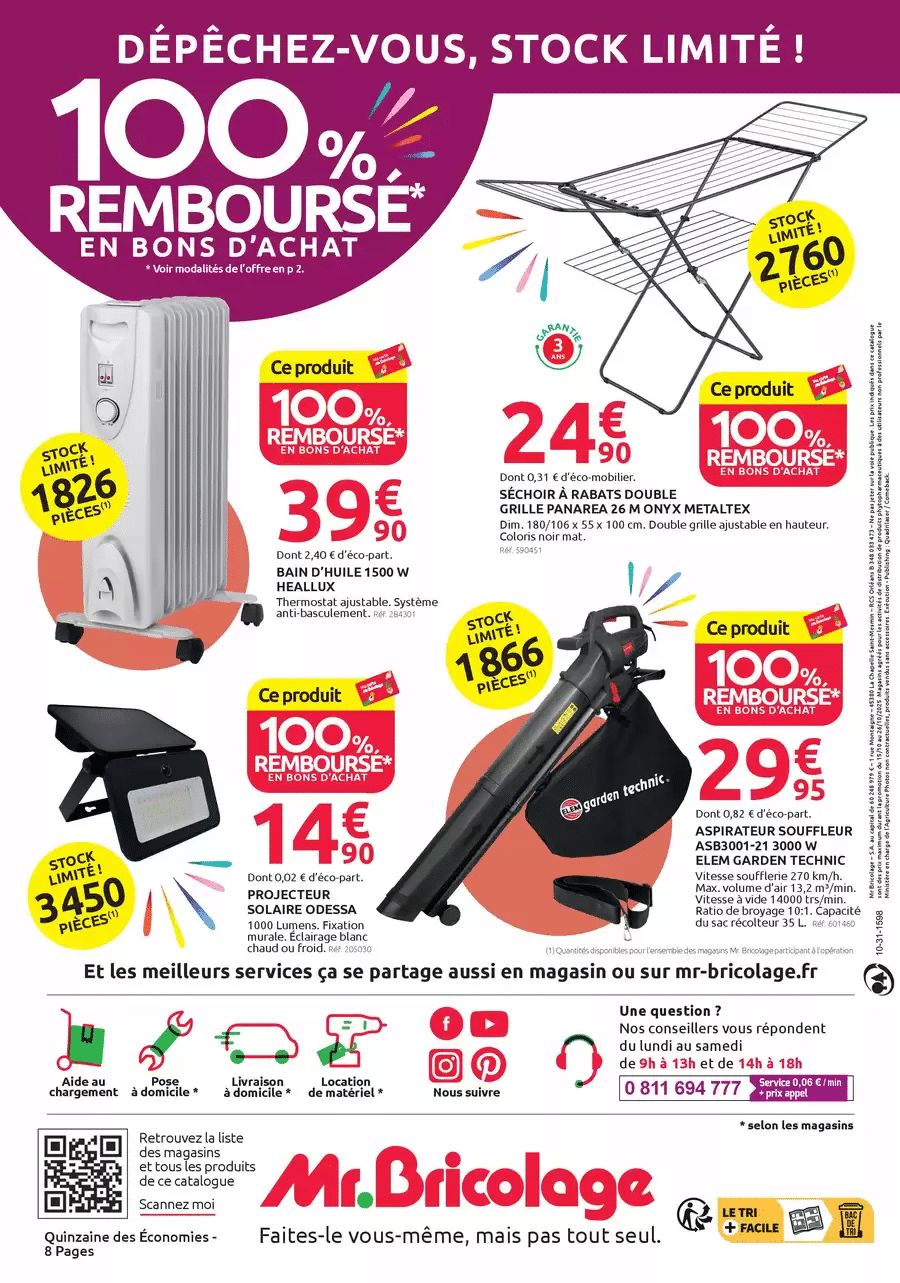 Feuilletez en ligne les plus recentes promotions, offres, remises et rabais du prospectus Mr Bricolage, valable du 15 octobre – 26 octobre, 2025.