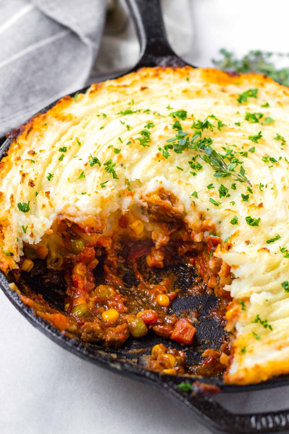 Ce plat classique associe une purée de pommes de terre crémeuse à une garniture savoureuse à la viande, créant un repas satisfaisant parfait pour toute occasion.