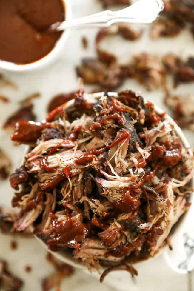 - Pour finir, enveloppez le porc dans une feuille d’aluminium robuste et cuisez-le encore 1 1/2 heures, jusqu’à ce que le porc atteigne 190°F. Enfin, retirez le porc du gril et laissez-le reposer pendant 30 minutes avant de l’effilocher.