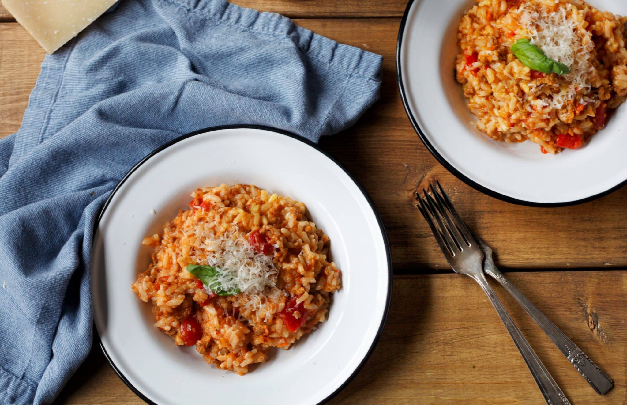 - Placez le plat au four à feu moyen jusqu’à ce que la mozzarella soit dorée et bouillonne sur le risotto riche et savoureux.