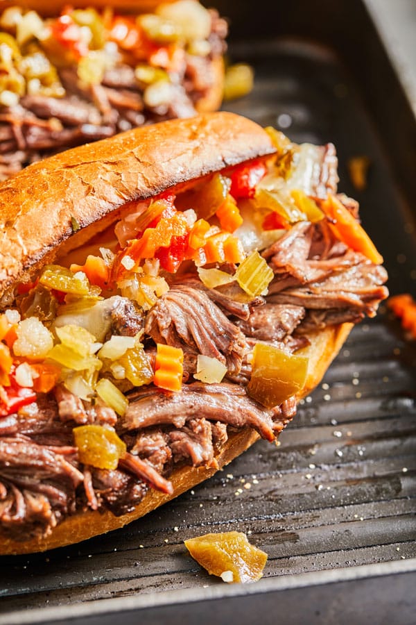 3. Couvrez et laissez cuire encore une heure. Lorsque c’est prêt, servez le bœuf savoureux sur les petits pains Hoagie et dégustez vos sandwichs au rôti de bœuf italien aux pepperoncinis.