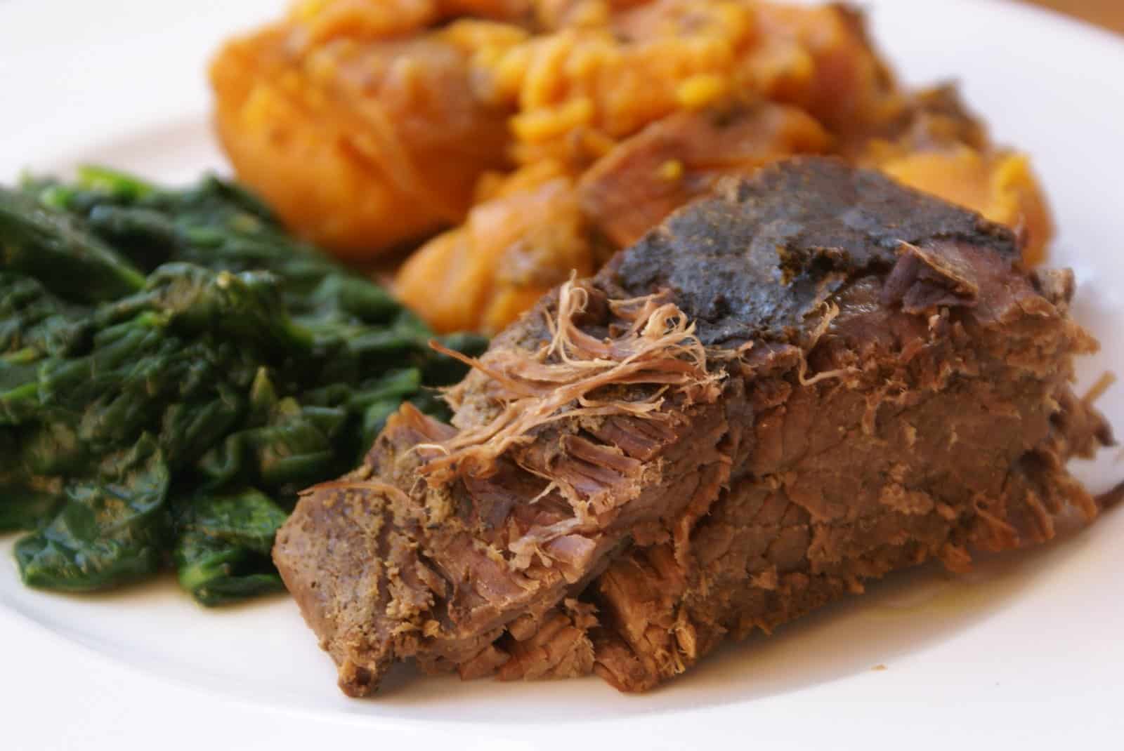 - Retirez soigneusement le rôti de la mijoteuse et tranchez-le. Servez les tranches avec le mélange de légumes et le liquide de cuisson savoureux. Pour une touche supplémentaire, garnissez de branches de thym si désiré.