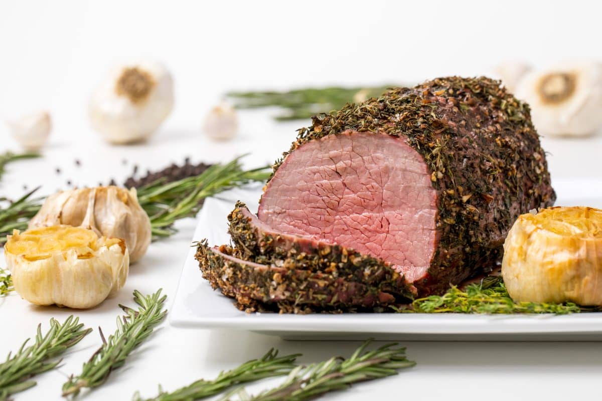- Parsemez le bouquet de fines herbes fraîches (romarin, thym, feuille de laurier et sauge) sur le rôti, permettant à leurs arômes parfumés de pénétrer la viande.