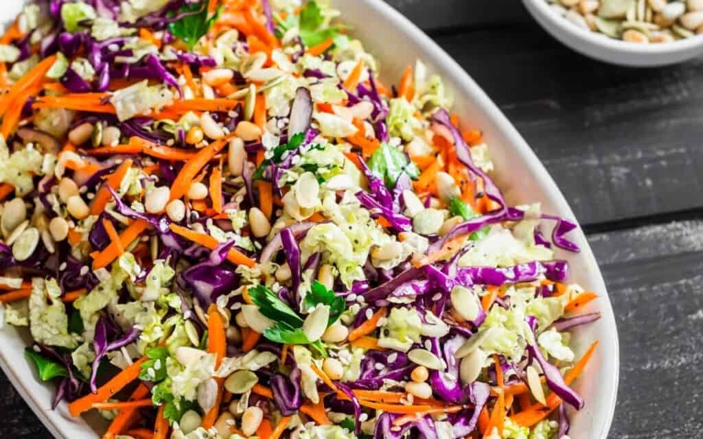 - Servez votre Salade de Chou Confetti Aigrelette en accompagnement de poulet grillé, de poisson ou de barbecue pour un contraste délicieux de saveurs.