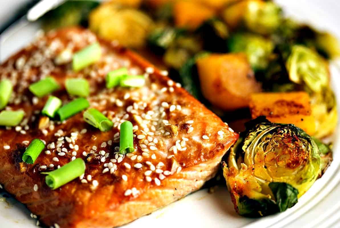 Saumon au Four avec Glasage Balsamique et Choux de Bruxelles Rôtis