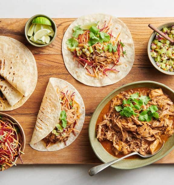 • Réchauffez les tortillas de maïs dans une poêle sèche ou sur une plaque chauffante pendant quelques secondes de chaque côté pour une texture parfaitement moelleuse et légèrement croustillante.